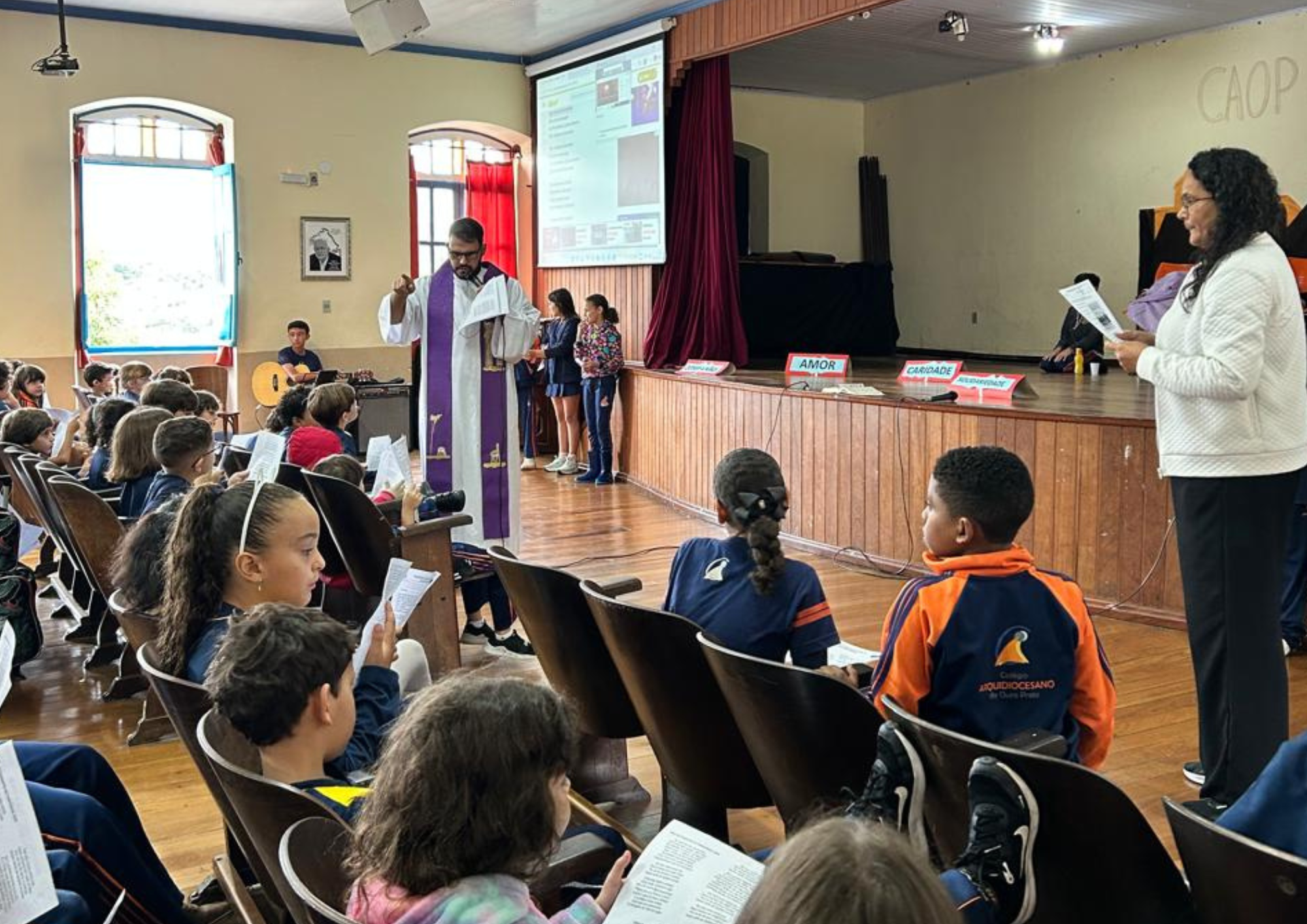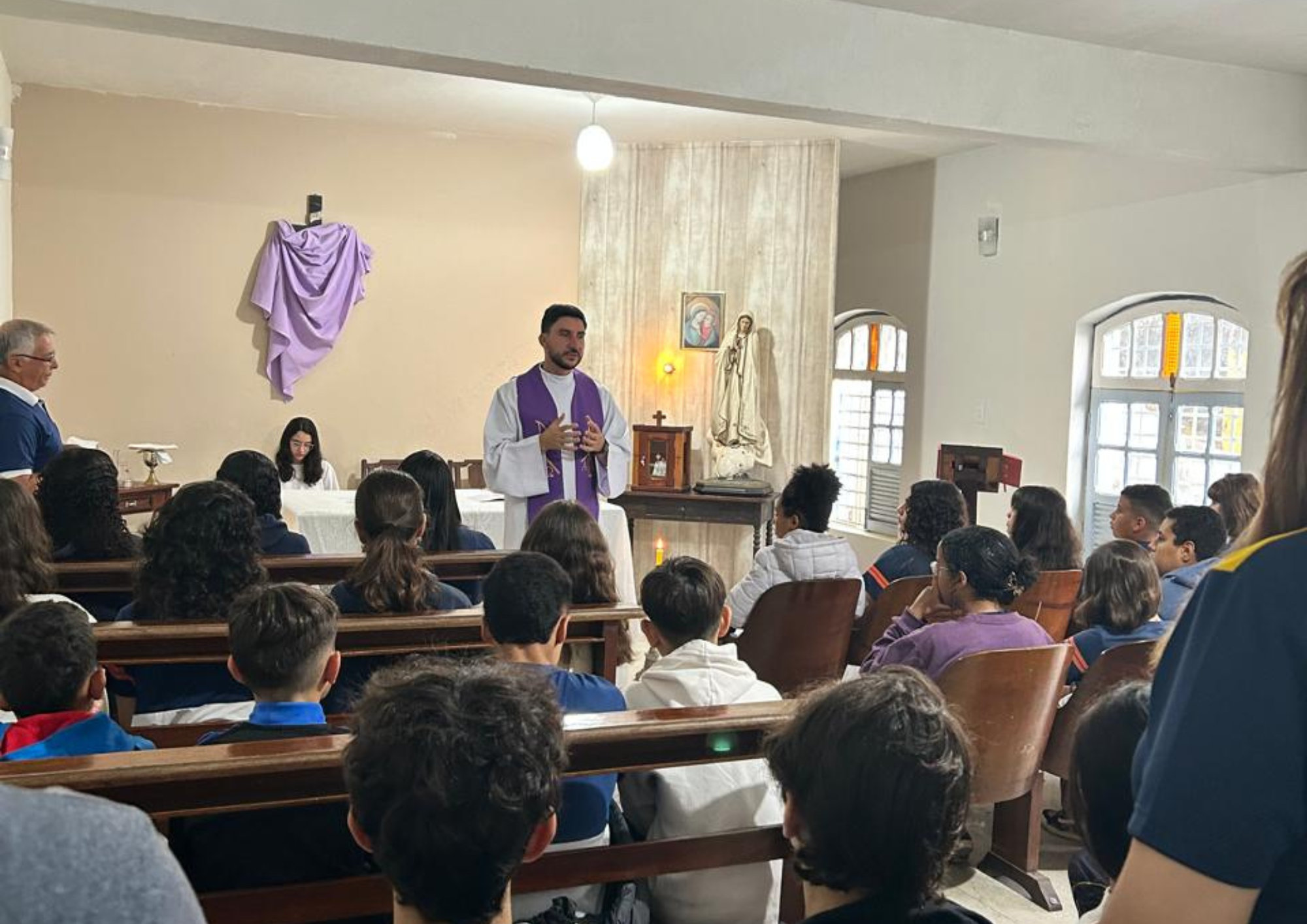 Durante as atividades, os(as) Alunos(as) participaram de representações da cena do cartaz da Campanha da Fraternidade e de um diálogo sobre a temática, favorecendo a compreensão do significado da fraternidade e da importância do direito à moradia digna. A programação contou também com momentos de oração e reflexão, conduzidos pelo Padre Wesley e pelo Diretor do Colégio Arquidiocesano, Padre Edir, com o apoio da funcionária Angélica, que auxiliou na condução do momento de oração. Houve ainda a oportunidade para que os(as) Alunos(as) que desejaram pudessem vivenciar o sacramento da reconciliação, em preparação espiritual para a vivência da Semana Santa.