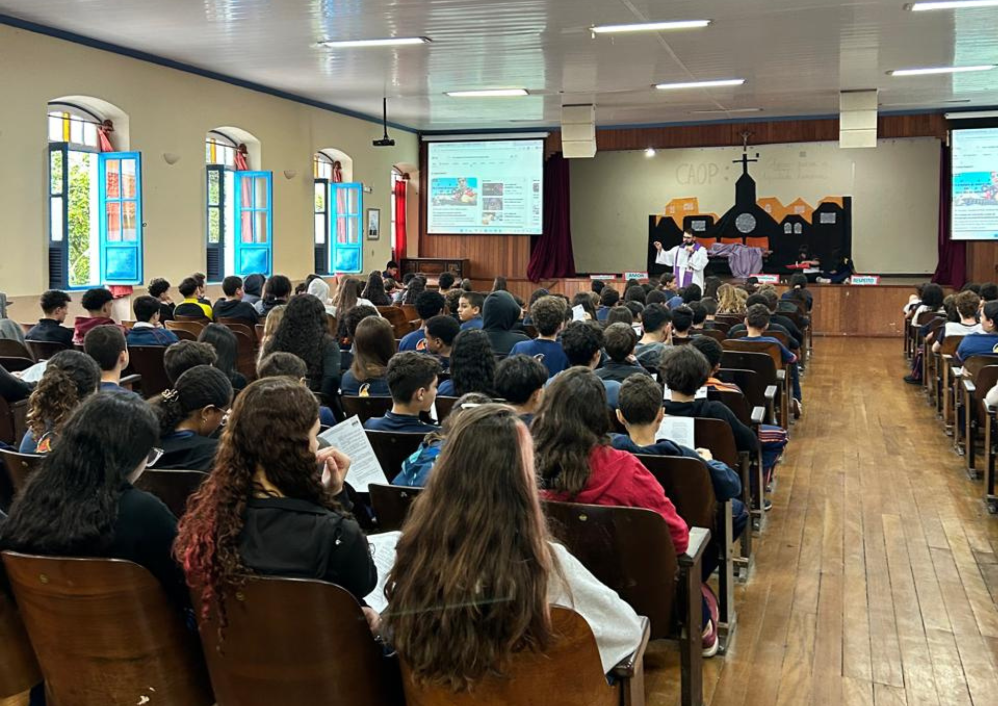 A abertura do Projeto Institucional ocorreu no dia 19 de março, com atividades realizadas nos períodos da manhã e da tarde. O momento foi conduzido pelo Professor do Componente Curricular de Ensino Religioso, Padre Wesley, que apresentou aos(às) Estudantes a reflexão proposta pela Campanha da Fraternidade, que fundamenta o Projeto Institucional que será desenvolvido ao longo deste ano.